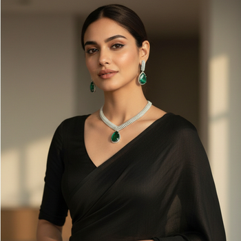 Quick viewAyesha – Zircon Choker Set with Earrings, Tikka & Optional Jhoomer$135.00 USDFrom $121.00 USD /Silver/ClearPinkChoose options Save $14.00