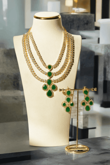 Niara- Tripple Layer Diamante Accent AD Necklace Set