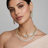 Zaina is where bold geometry meets South Asian glam. This sculptural necklace set makes a striking statement with its dual layers of brilliance — ideal for weddings, receptions, or evening events where all eyes are on you. Available in rhodium or gold plating, Zaina’s neckline is framed with a top tier of baguette-cut lab-grown stones, followed by a cascading row of teardrop-shaped dazzlers. The centerpiece? A square-cut crystal surrounded by pavé accents that mirror the matching earrings.