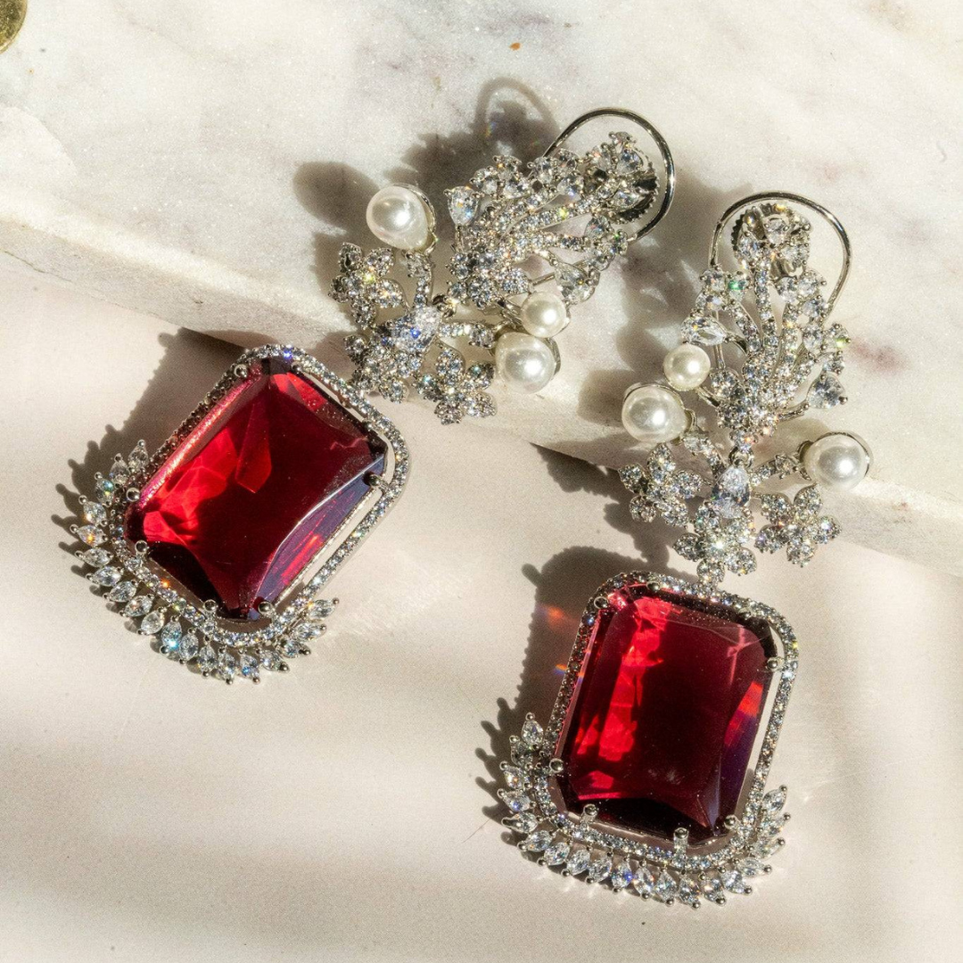 Quick viewAayat - Statement Earrings in Ruby Red or Crystal White – Rhodium Plated Earrings $75.00 /SilverRedChoose options Save 33%