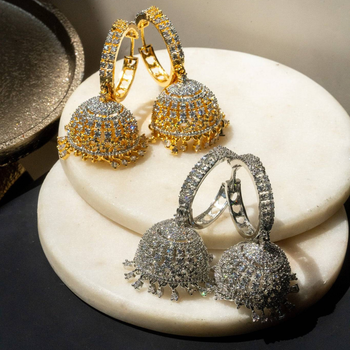 Quick viewLailoma AD Hoop Jhumka Earrings - Gold or Rhodium Plated $63.00 /Silver/ClearGold/ClearChoose options