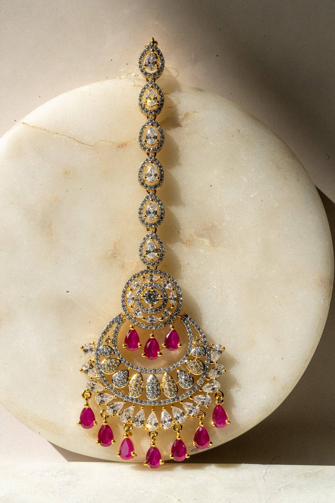 Available in four dazzling colorways, this tikka is a dream for brides, bridesmaids, or anyone wanting to make a lasting impression at their next South Asian event.