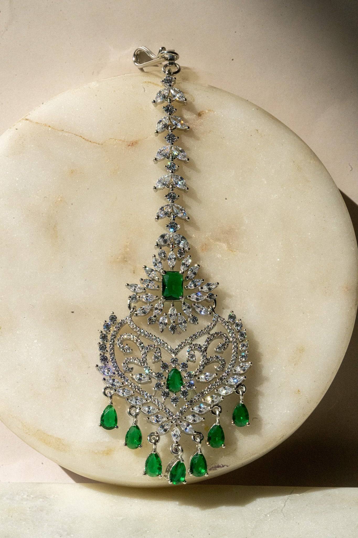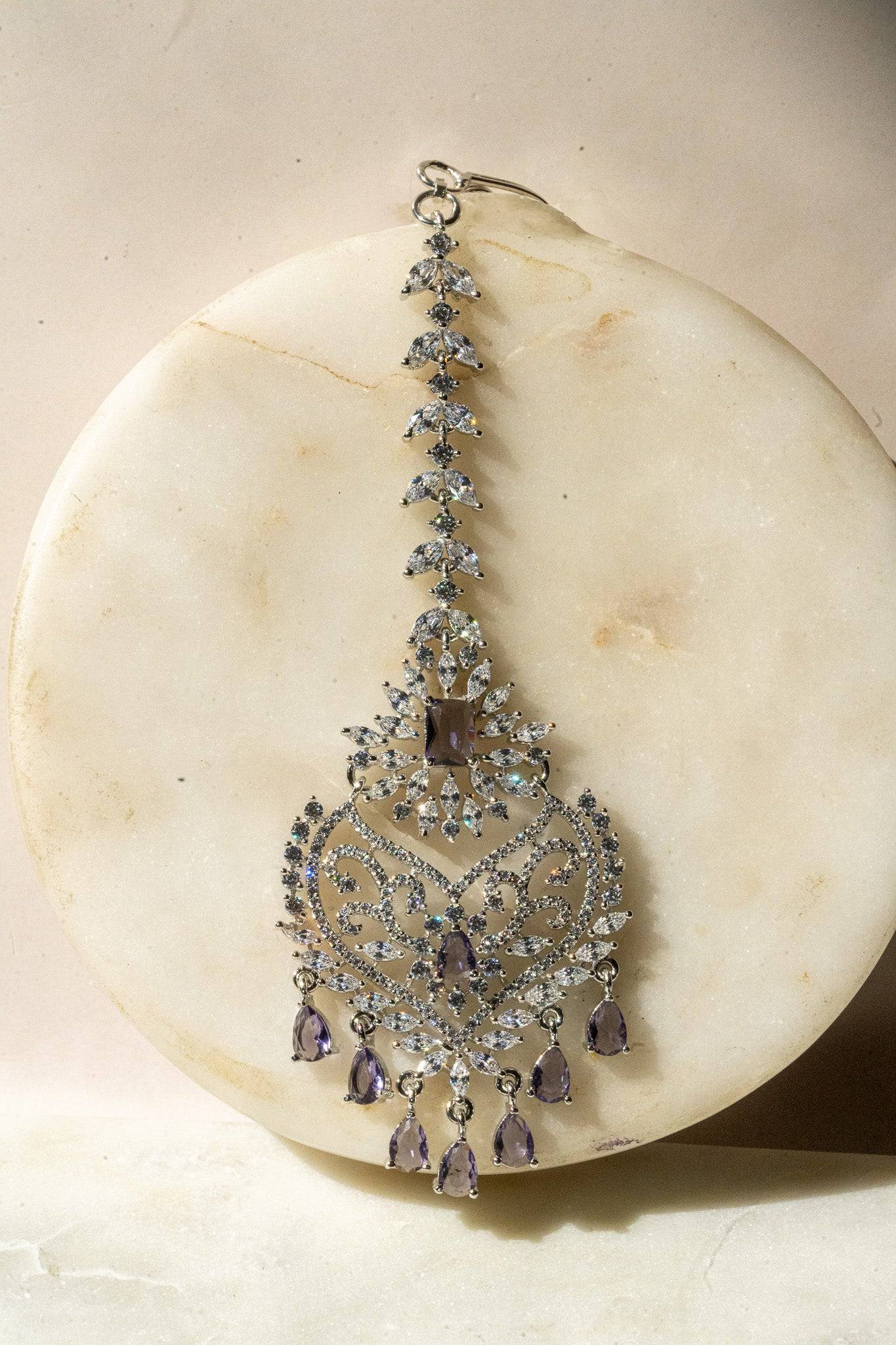 Eliyana – Rhodium Plated AD Maang Tikka with Multi-Faceted Stones