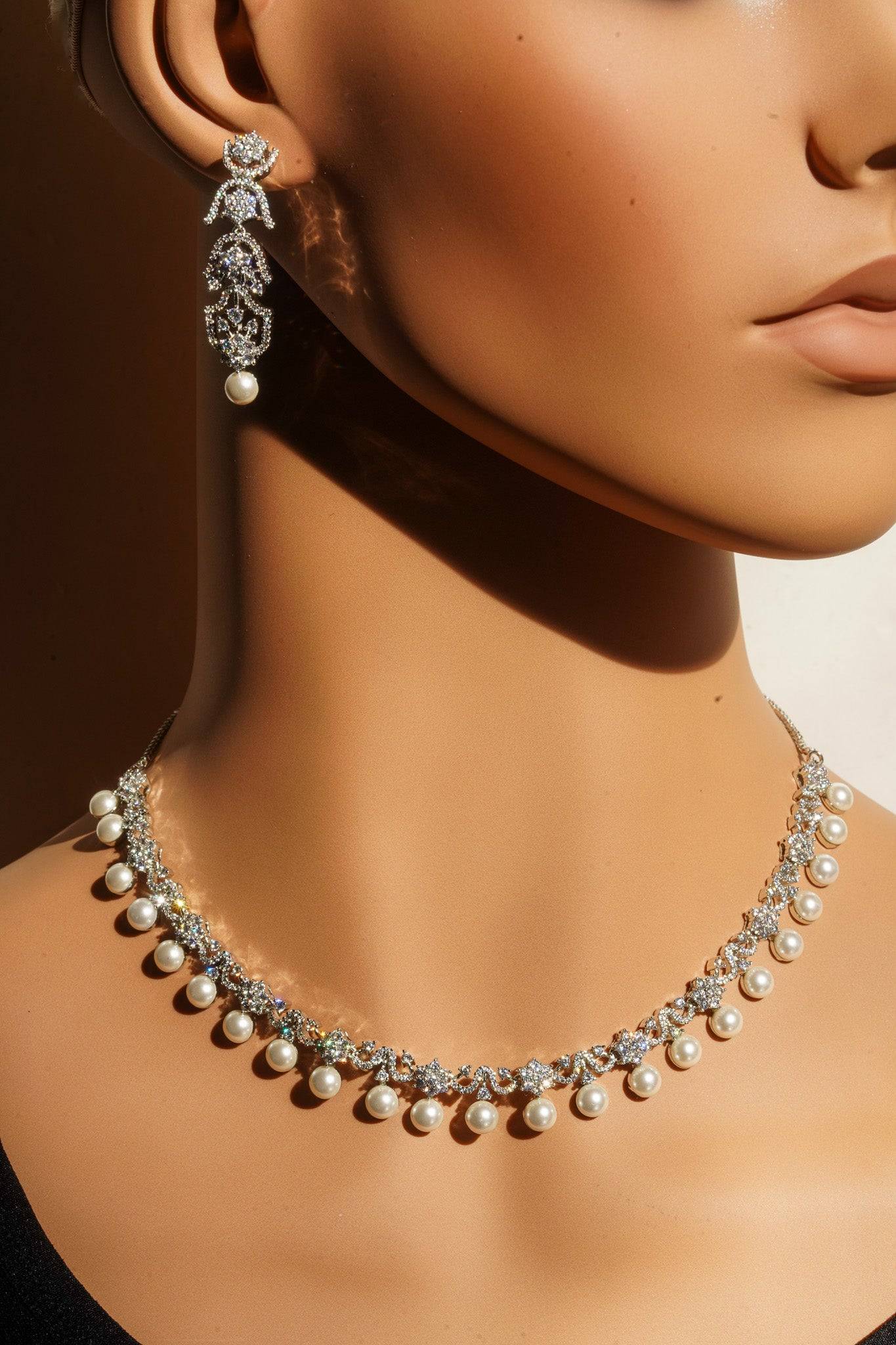 Aditi - Rhodium Plated Delicate Necklace & Pearl Drop Earrings