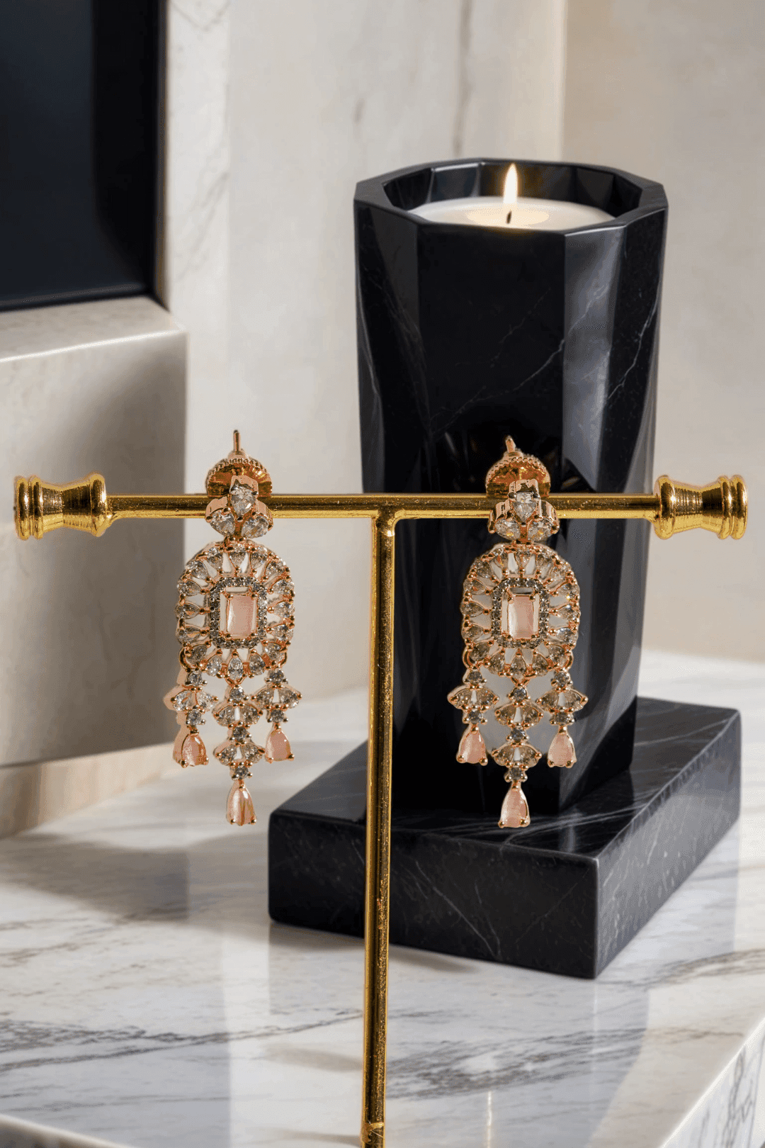 - Design: Cascading necklace with delicate patterns and diamante accent AD stones