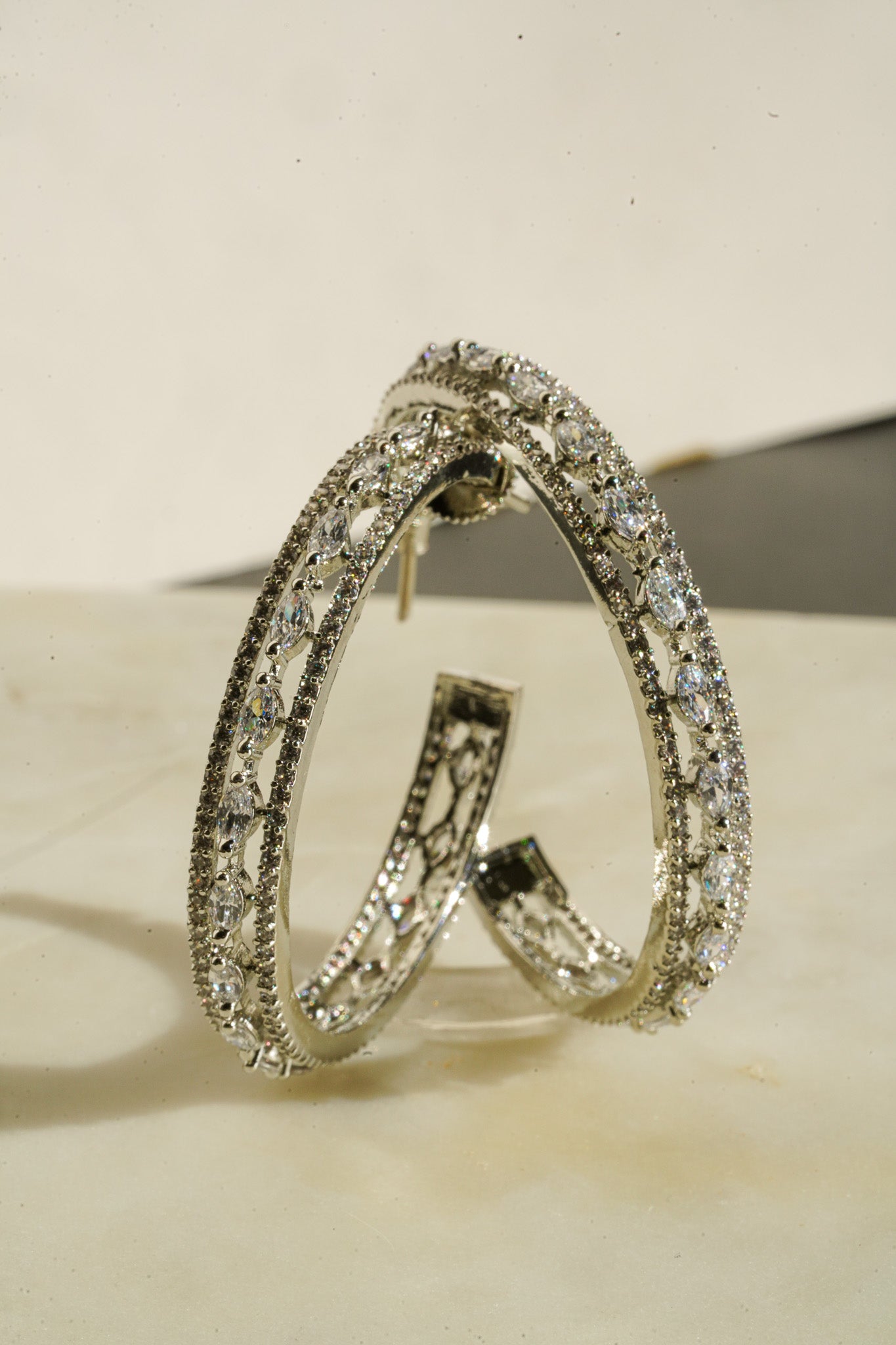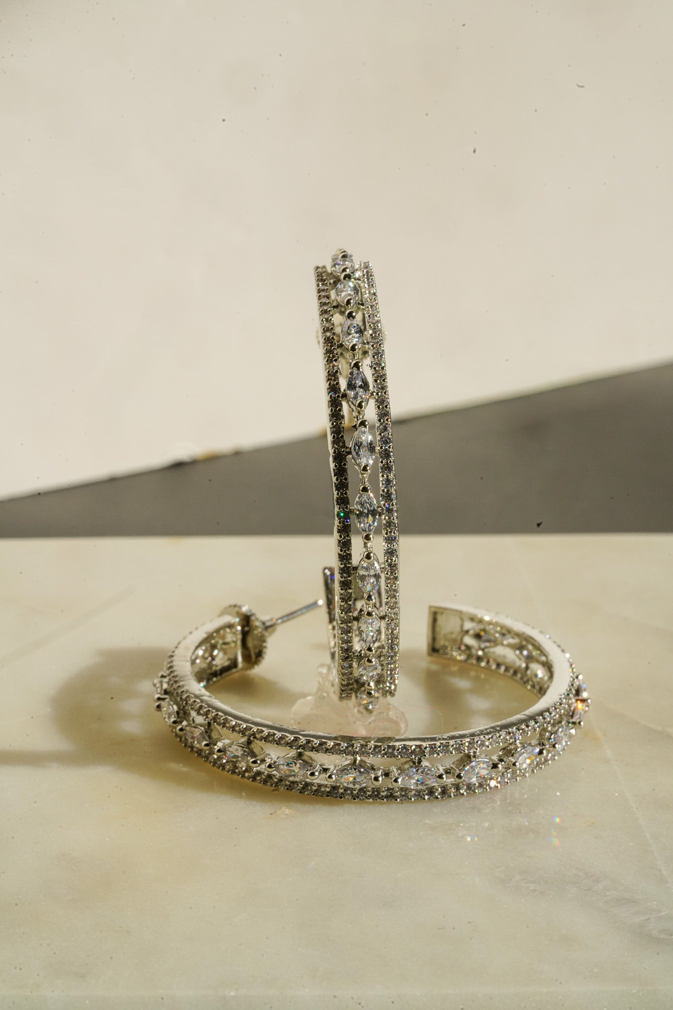 The design is a masterful blend of brilliance: the center features dazzling marquise-cut stones set in a refined, airy pattern, while the edges are framed by two continuous rows of micro-pavé set AD (American Diamond) or Zircon stones. This intricate combination ensures maximum, multi-directional sparkle.