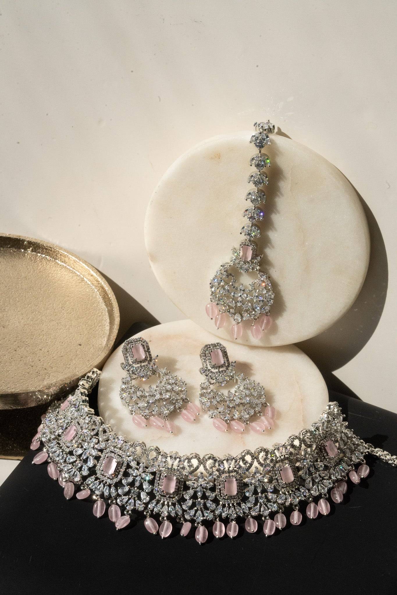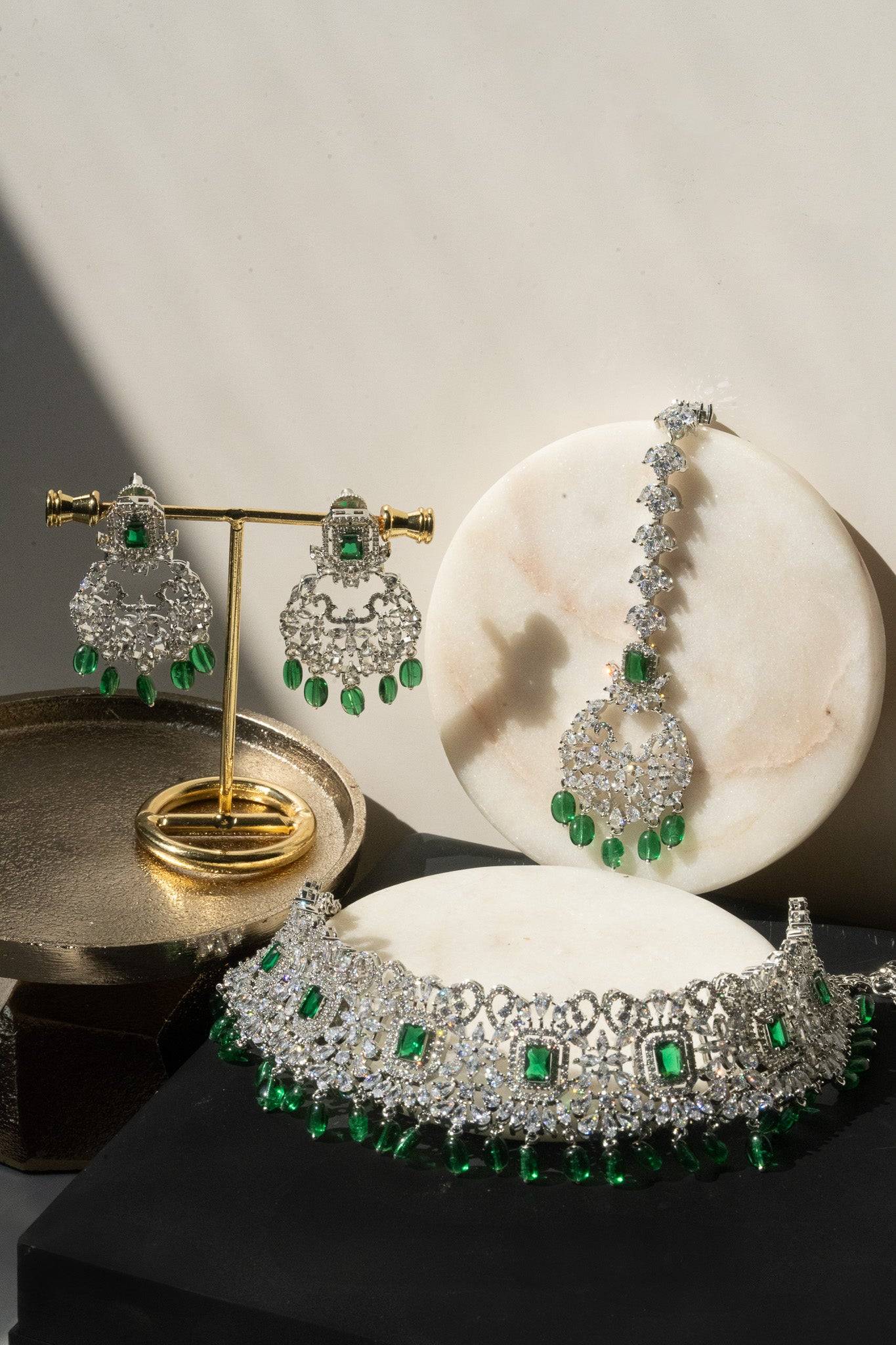 Irma Rhodium Choker Necklace & Earring Tikka Set
