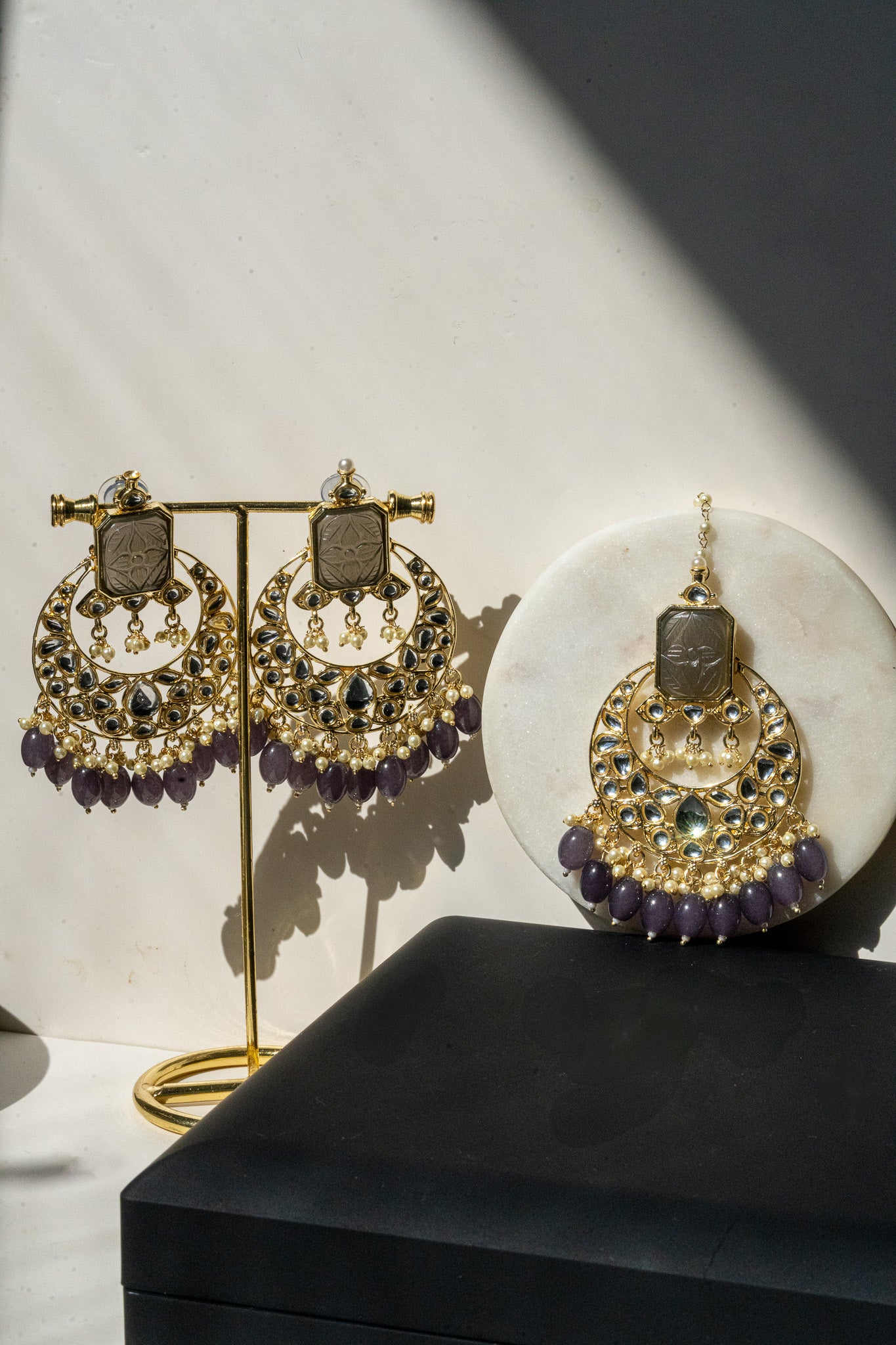 Lamees Amethyst Purple Kundan Chandbali & Maang Tikka Set