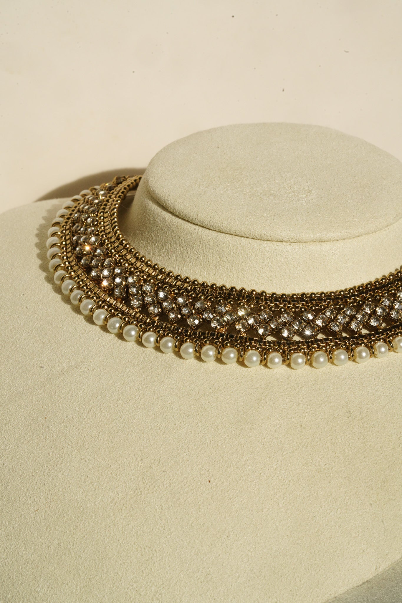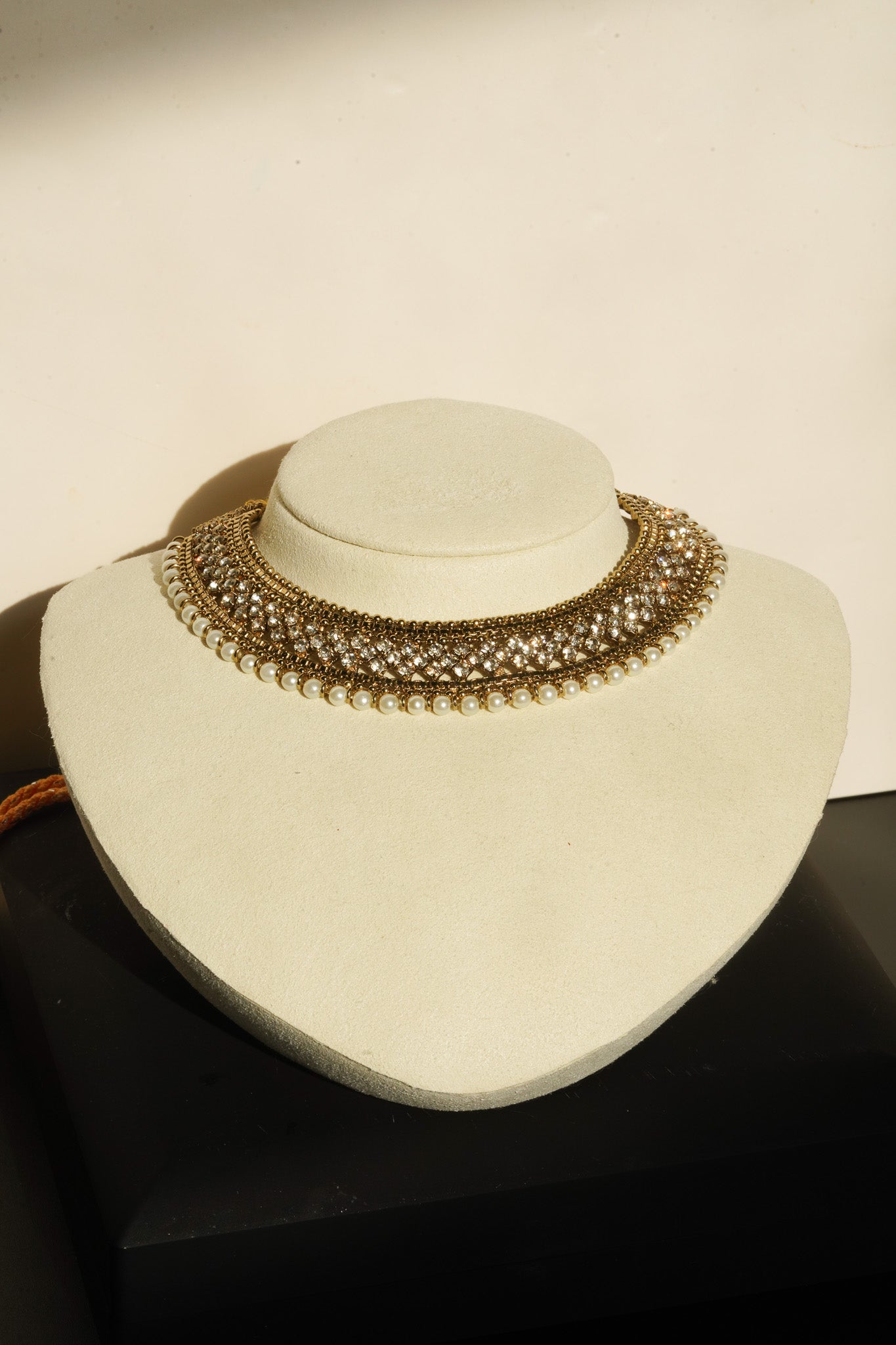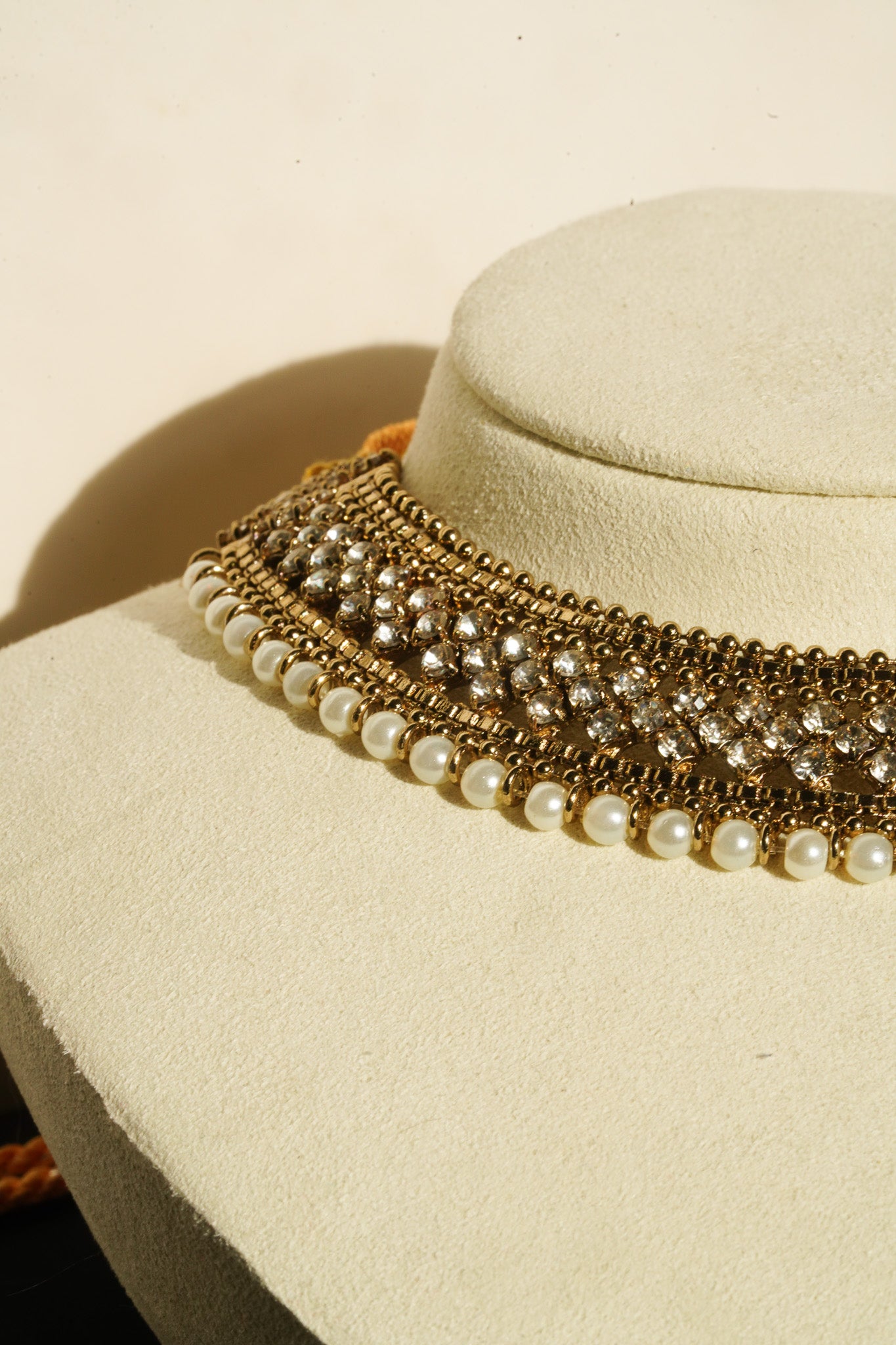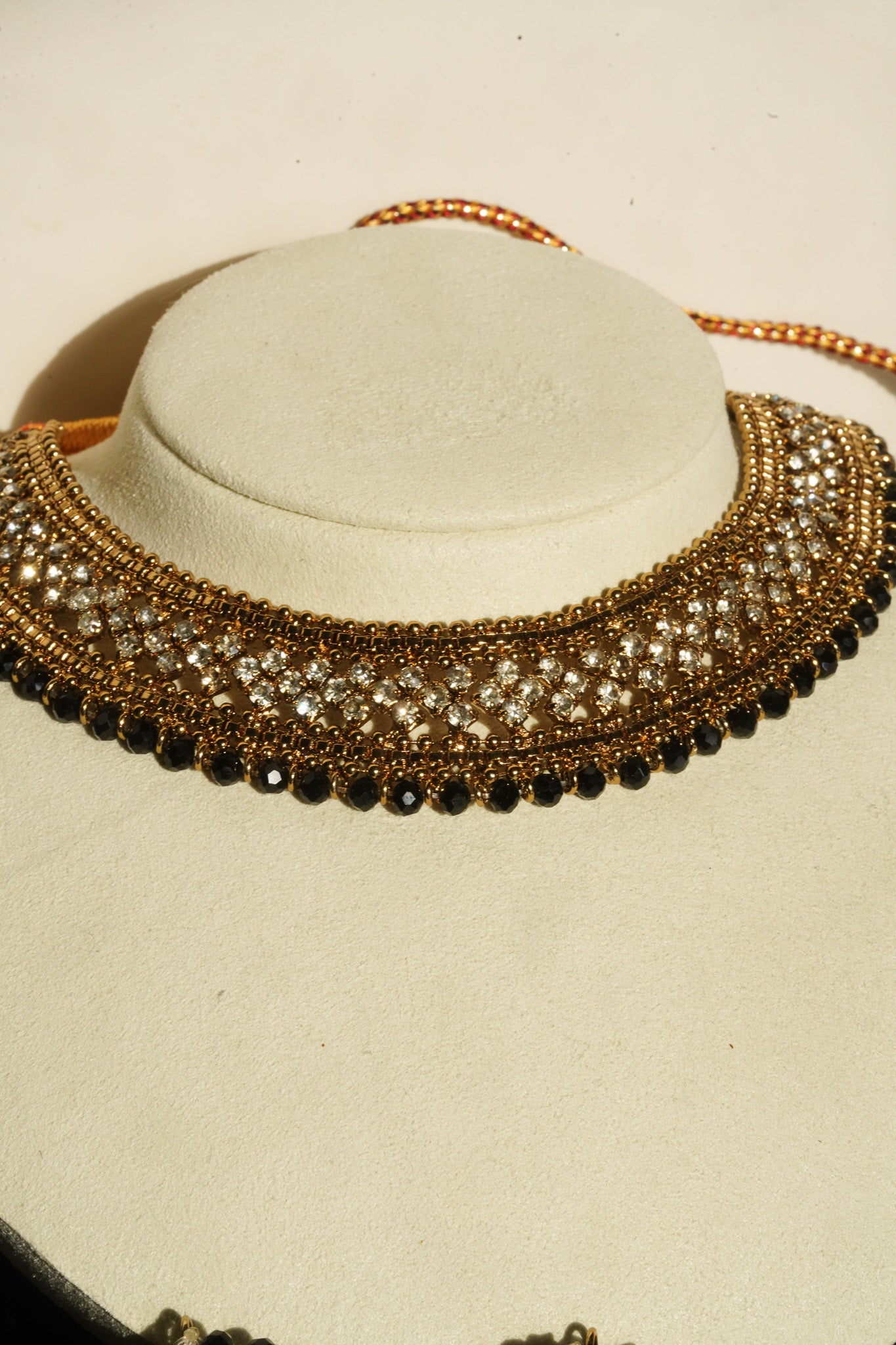 Indulge in timeless elegance with the Sabhan Classic Artisan Crafted Necklace Set featuring Oversized Stud Earrings. This gold-plated ensemble, adorned with white zircon stones, is available in two captivating color options. Choose from the classic gold and pearl version, where both the necklace and stud earrings feature a delicate pearl trim, or opt for the chic gold and black option, featuring a black bead trim for a sophisticated edge. The adjustable string on the necklace ensures a perfect fit, making this necklace set ideal for those who appreciate a traditional look with a chic twist.