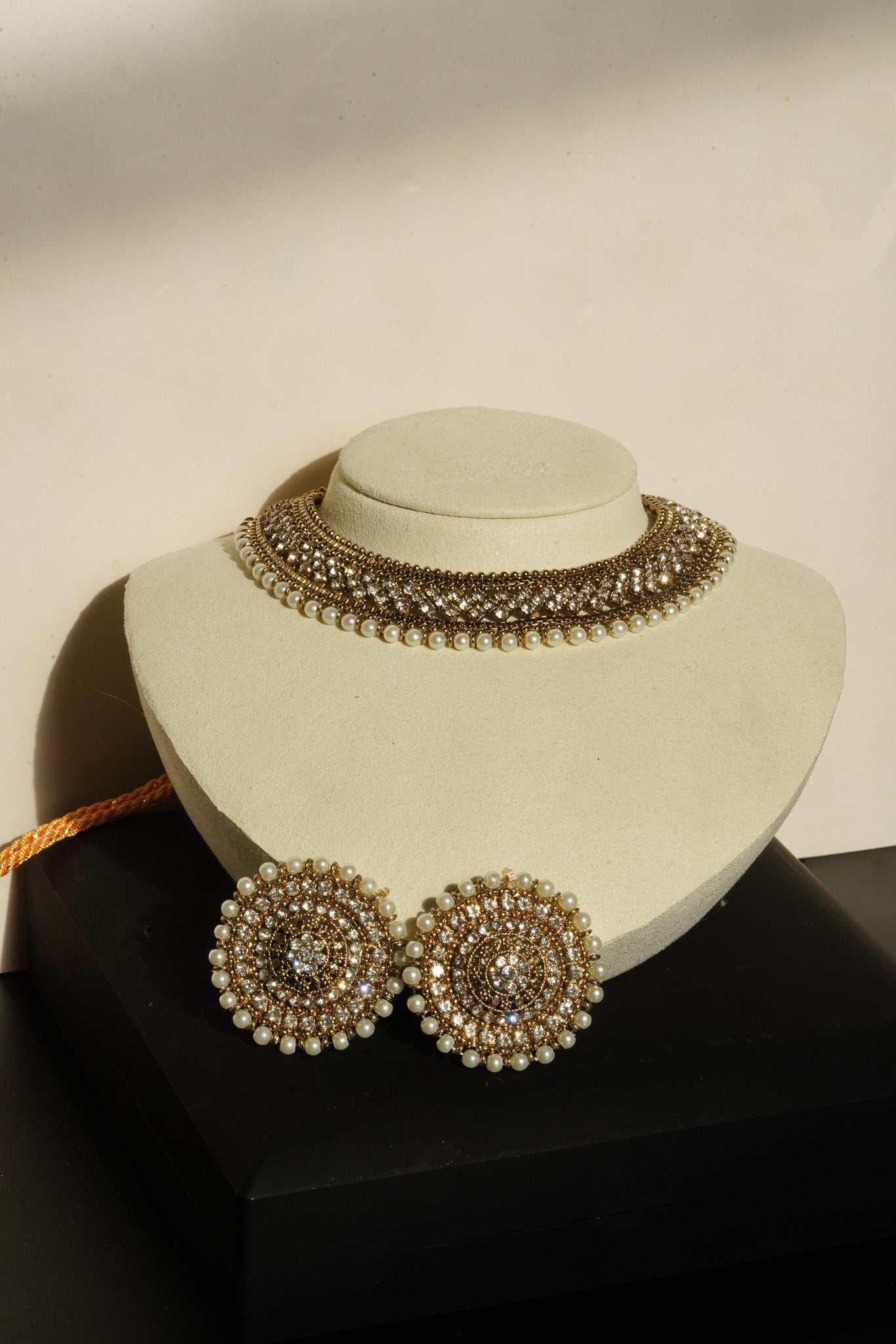 Sabhan - Classic Artisan Crafted Necklace Set With Oversized Stud Earrings